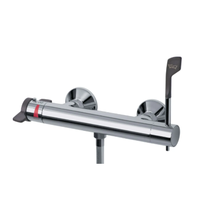 Robinet temporisé Tempostop mural pour lavabo à commande par levier-poussoir ergonomique débit 4 litres par minutes brise-jet Sur commande Ajouter